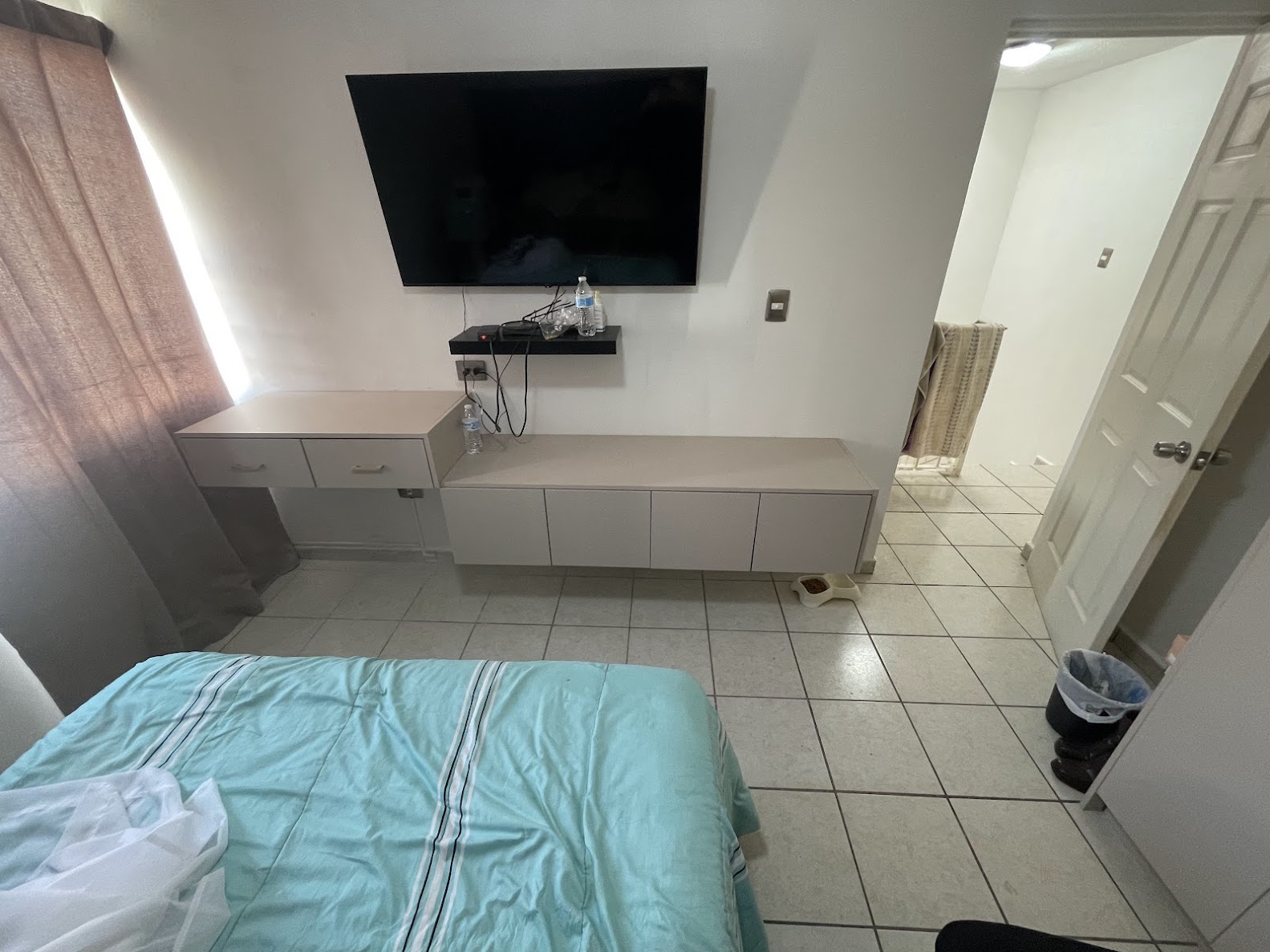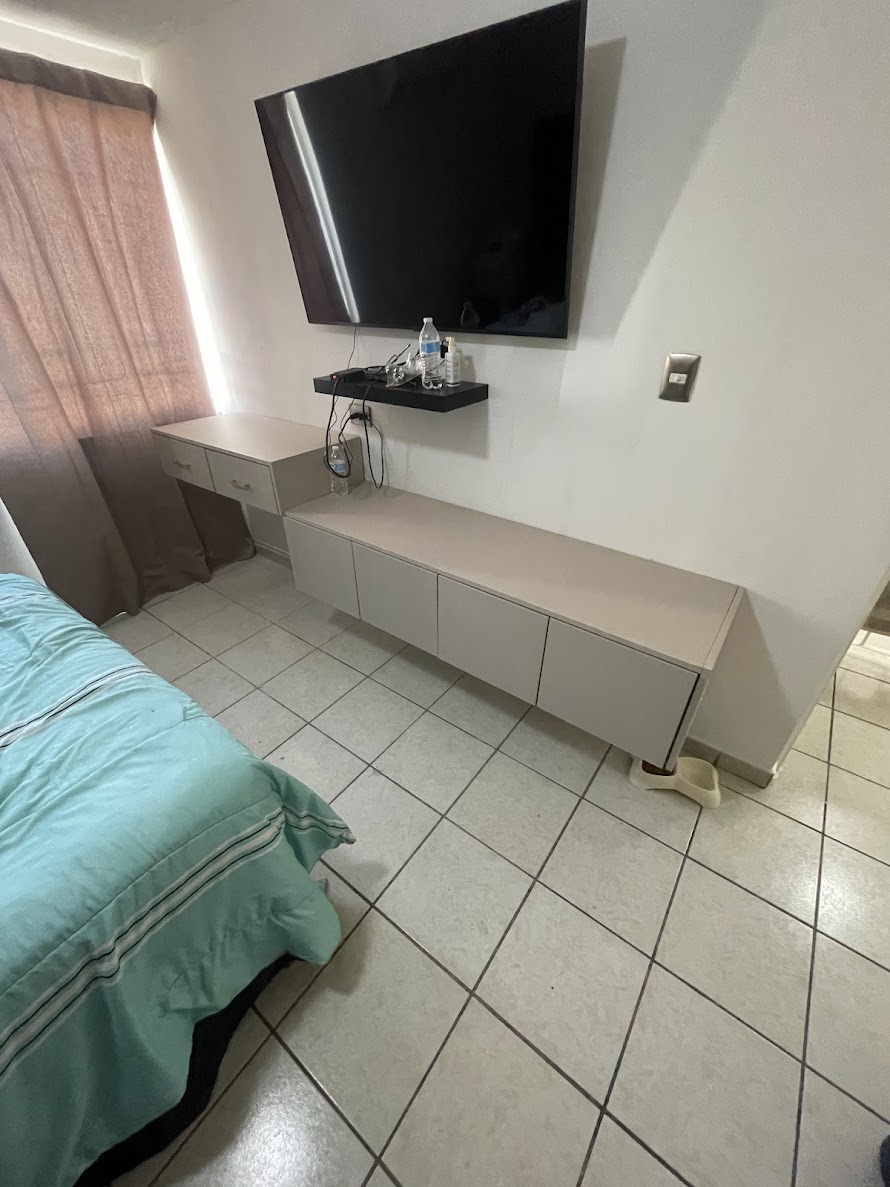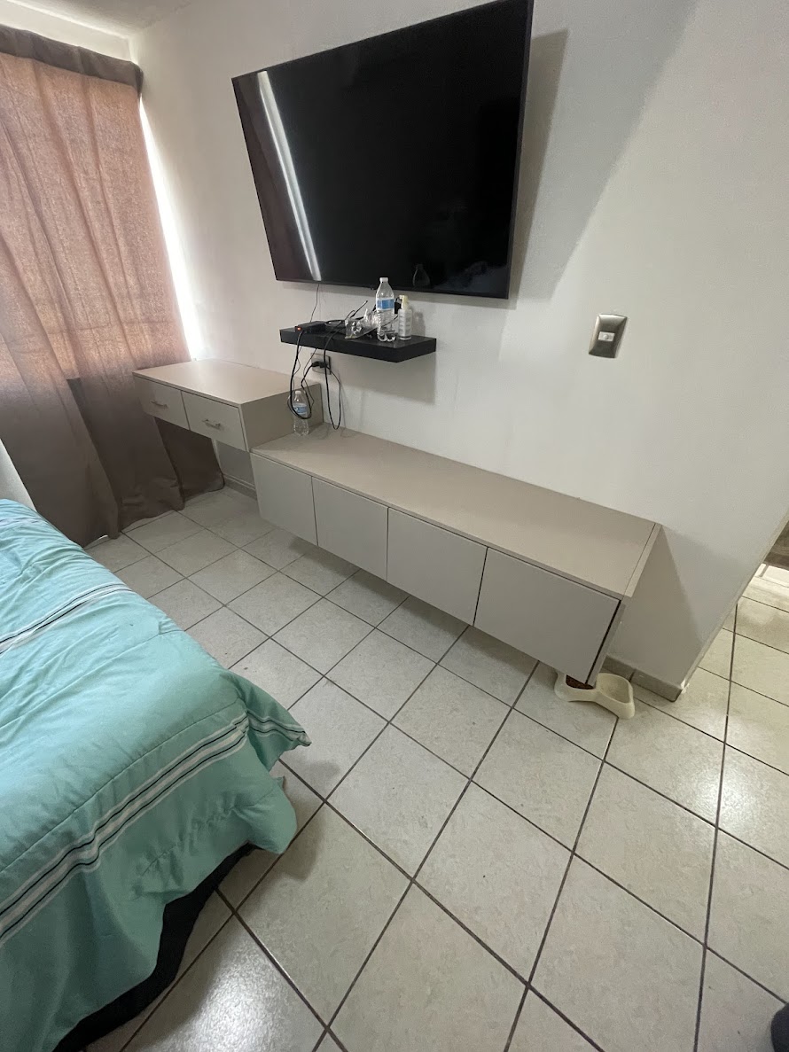 Este proyecto fue diseñado para aprovechar al máximo el espacio, combinando un área de entretenimiento con una zona de trabajo cómoda y moderna. Como en muchos trabajos a medida, no todo fue sencillo: batallamos bastante para lograr empotrar correctamente el escritorio, ya que el muro presentaba detalles que no estaban completamente alineados. Sin embargo, con paciencia, experiencia y ajustes precisos, logramos un empotre limpio y funcional, cuidando cada detalle para que el resultado final quedara como la cliente lo imaginó.